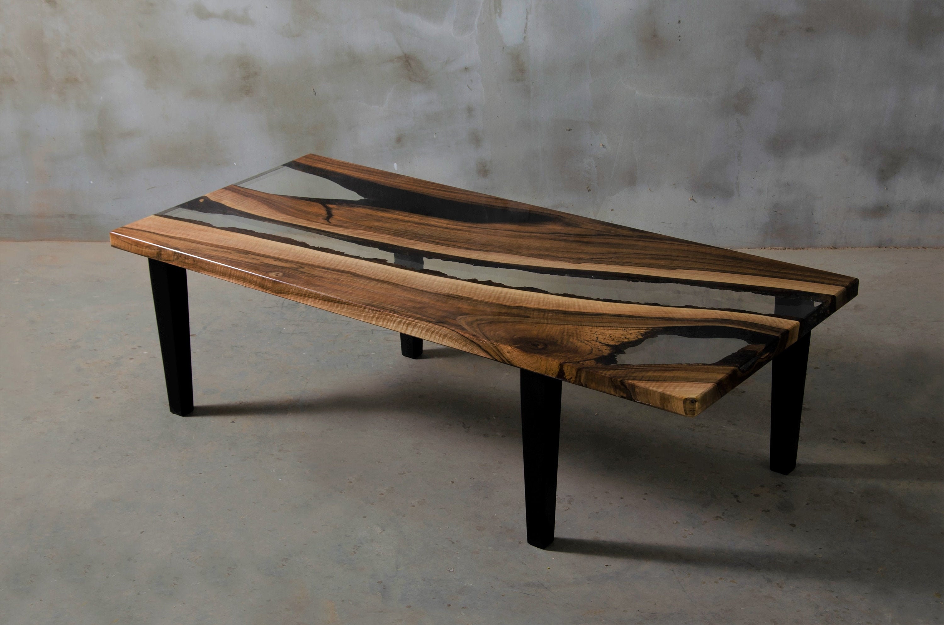 Custom Live Edge Coffee Table Made Of Walnut Crystal Etsy